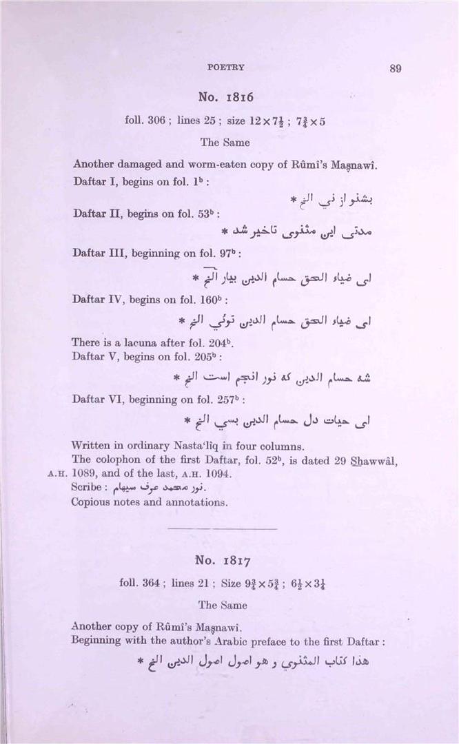 کیٹلاگ آف دی عربک اینڈ پرسین خدا بخش اورینٹل پبلک لائبریری پٹنہ