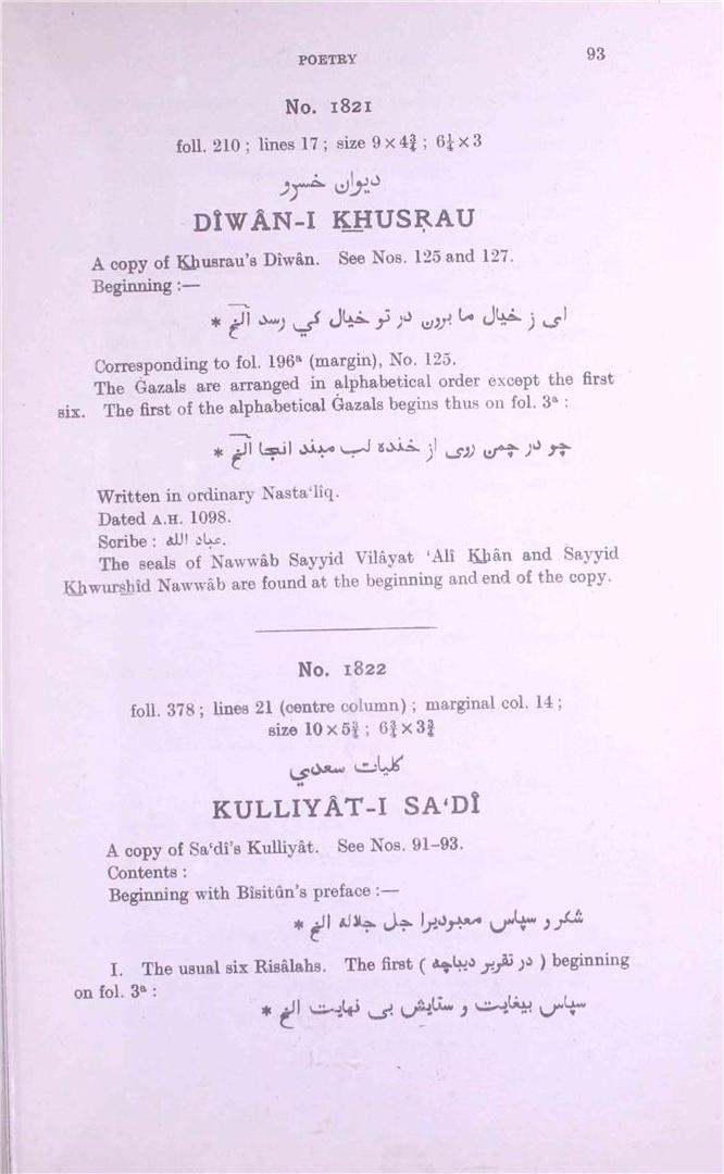 کیٹلاگ آف دی عربک اینڈ پرسین خدا بخش اورینٹل پبلک لائبریری پٹنہ