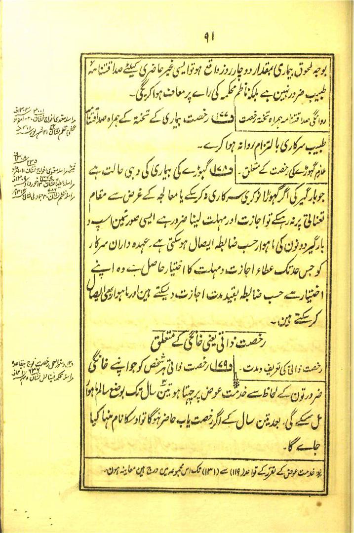 مجموعہ احکام رخصت فوج بے قاعدہ سرکار عالی