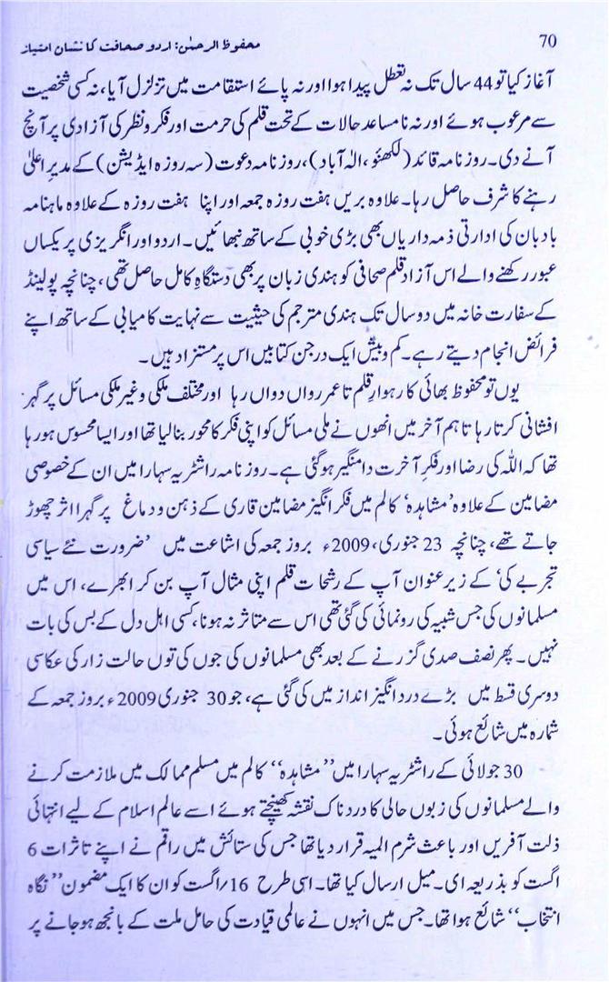 محفوظ الرحمن اردو صحافت کا نشان امتیاز
