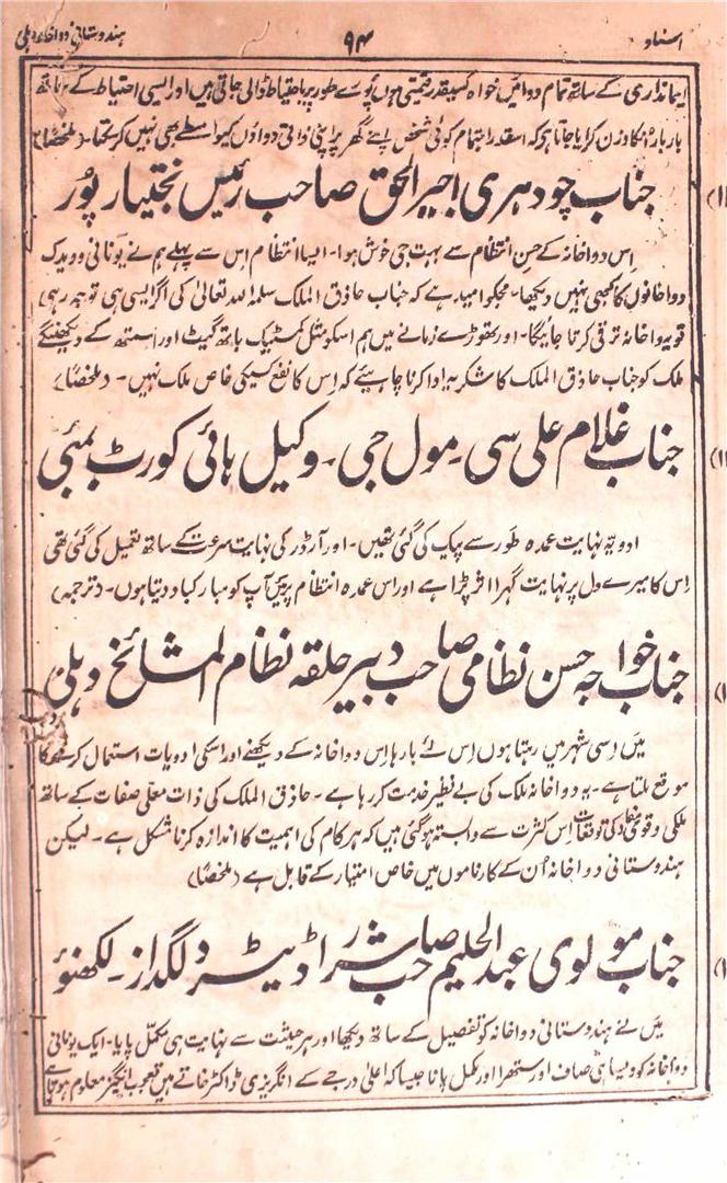 ہندوستانی دواخانہ دہلی کی فہرست ادویات