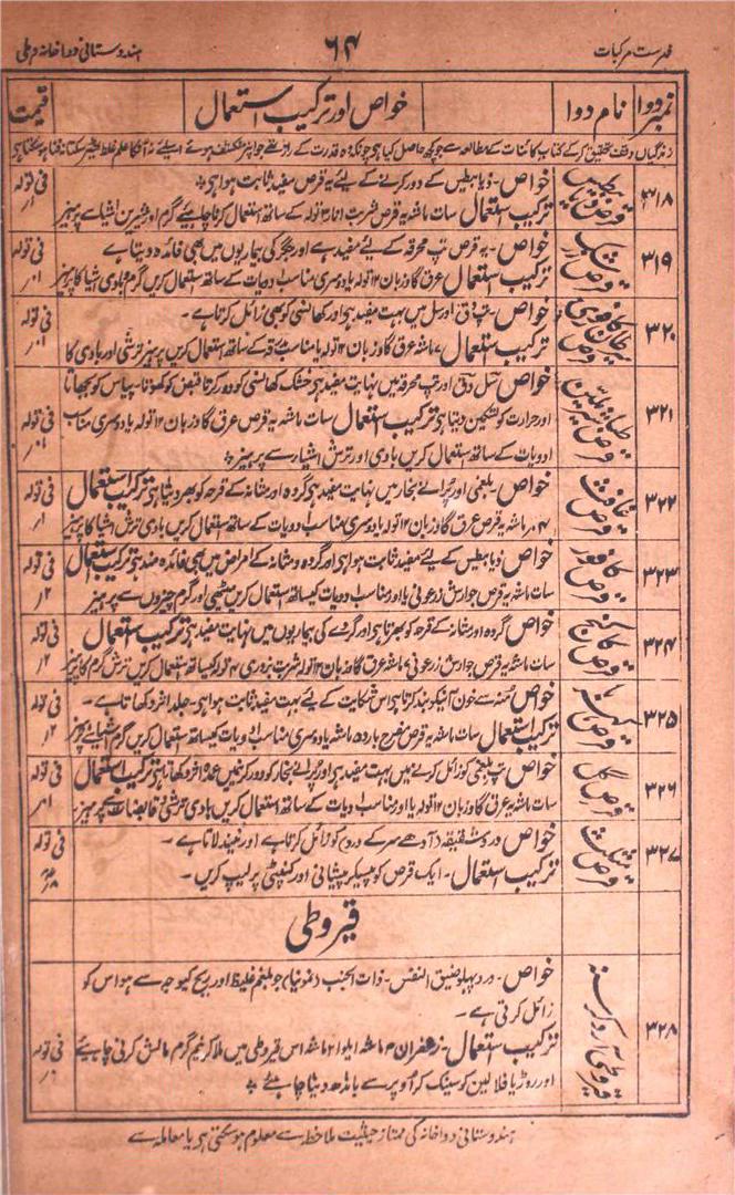 ہندوستانی دواخانہ دہلی کی فہرست ادویات
