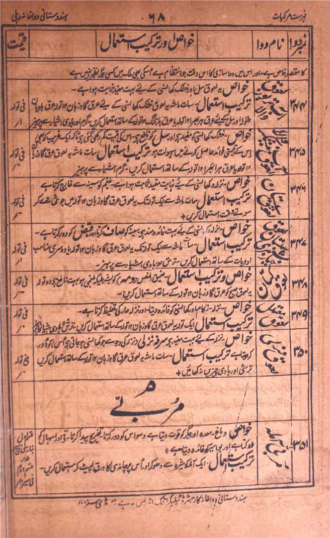 ہندوستانی دواخانہ دہلی کی فہرست ادویات