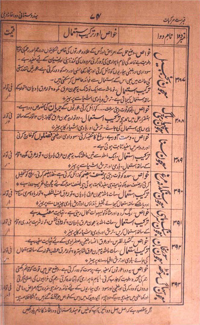 ہندوستانی دواخانہ دہلی کی فہرست ادویات