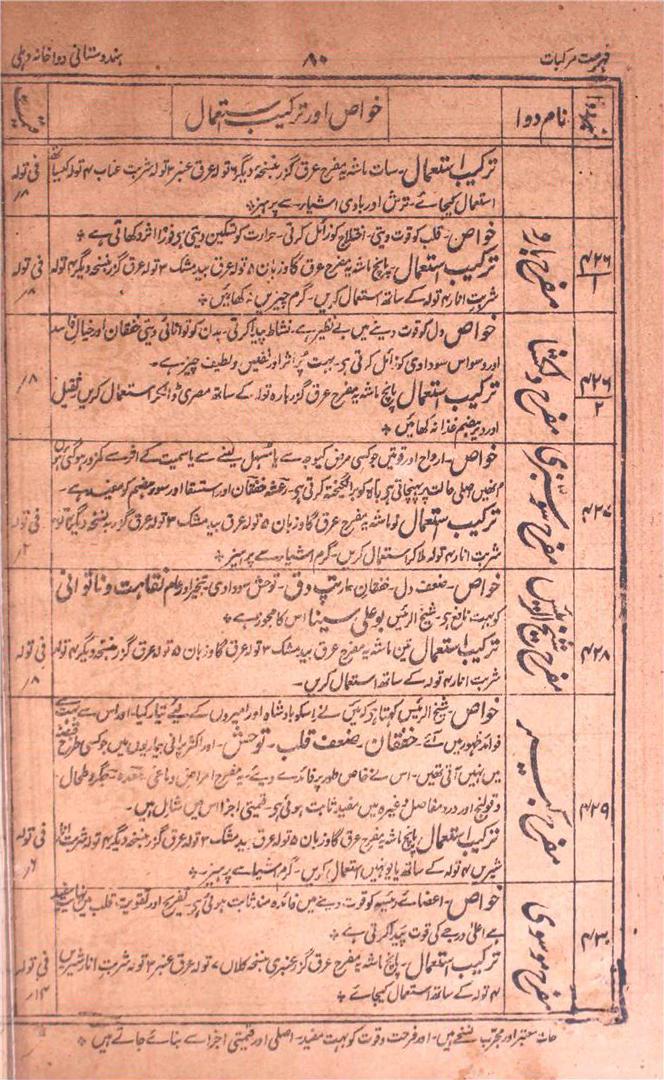 ہندوستانی دواخانہ دہلی کی فہرست ادویات