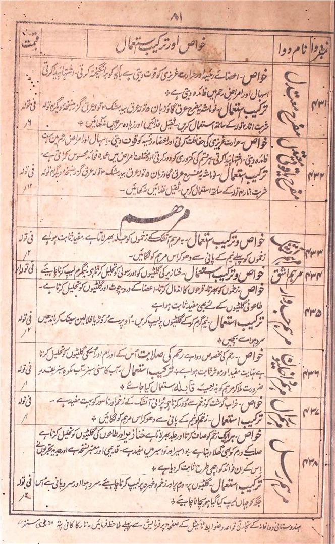 ہندوستانی دواخانہ دہلی کی فہرست ادویات