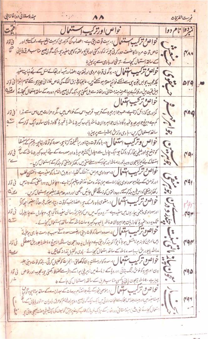 ہندوستانی دواخانہ دہلی کی فہرست ادویات